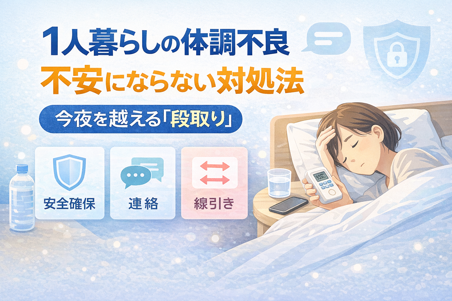 1人暮らしの体調不良は、「誰にも気づかれないかもしれない」という孤立感がいちばんの怖さです。 ここでは、安心の土台になる最低ラインを、具体的に作っていきます。